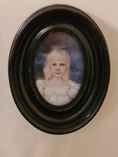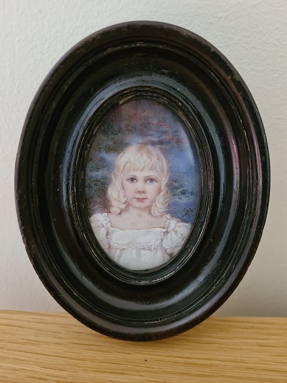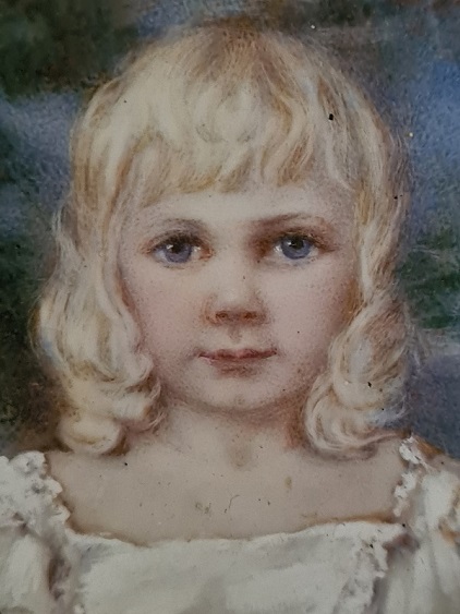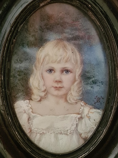 beautifully painted. A pretty blond child in her cream dress with