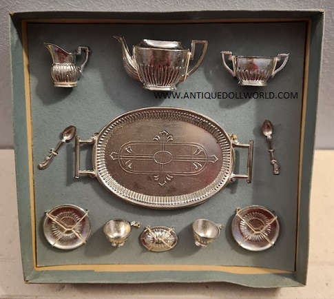 age wear, the metal set is in mint condition. The box measures